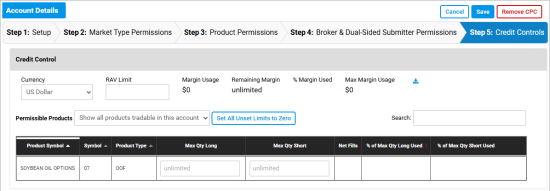 - Permissible Products - Show all products tradable in this account / Show Products with individual limits - Show products with specific limits.