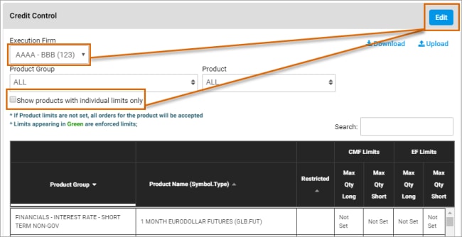 Clearing Member, Execution firm, Clearing Firm Account administrators can use the Credit Controls function to manage ICC (CME Globex) / Spot FX product level credit controls and maximum long / short order submission limits.