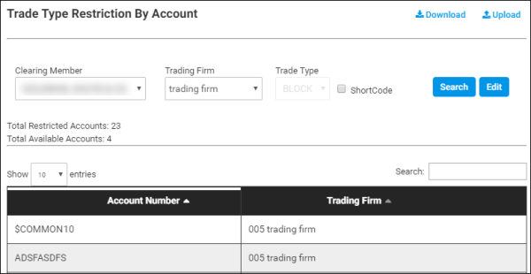 - Trading Firm: View and Edit restricted accounts for the Clearing Member and Trading Firm combination.
