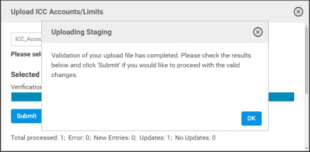 For details, refer to Uploading ICC Limits / Credit Controls.