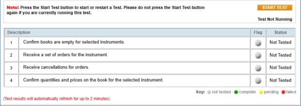 The purpose of this test is to verify that your application can properly receive and process book management information for market by price book.