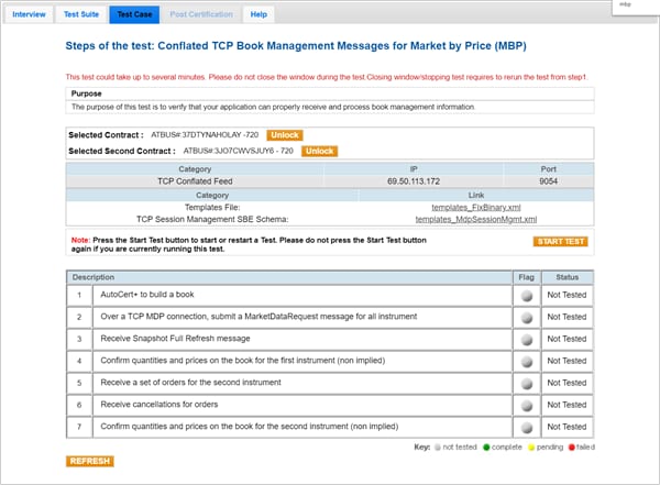 - To run the Conflated TCP Book Management Messages for Market by Price (MBP) (Snapshot Only) test: