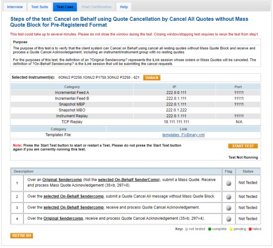 - Over the selected On-Behalf SenderComp, receive and process Quote Cancel Acknowledgement.