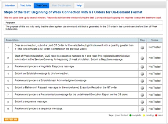 If a test is not proceeding to the next step, clicking the Refresh button (