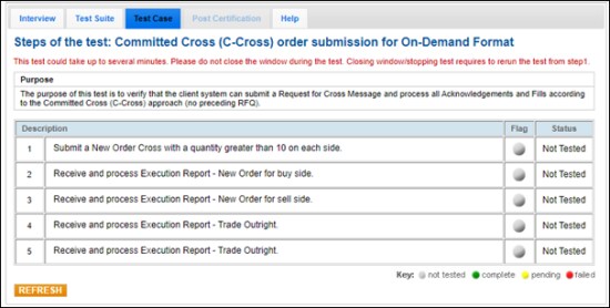 The purpose of this test is to verify that the client system can submit a Request for Cross Message and process all Acknowledgements and Fills according to the Committed Cross (C-Cross) approach (no preceding RFQ).