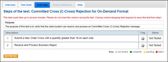 If a test is not proceeding to the next step, clicking the Refresh button (