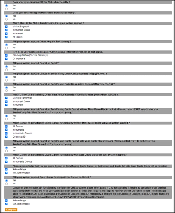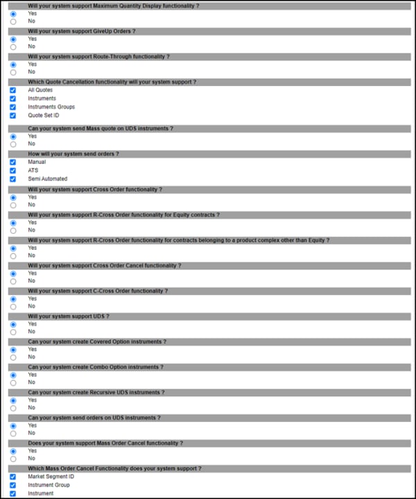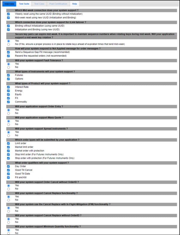 The interview consists of a series of questions about your trading application and products. You must complete the pre-certification interview before running the test cases.