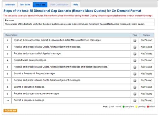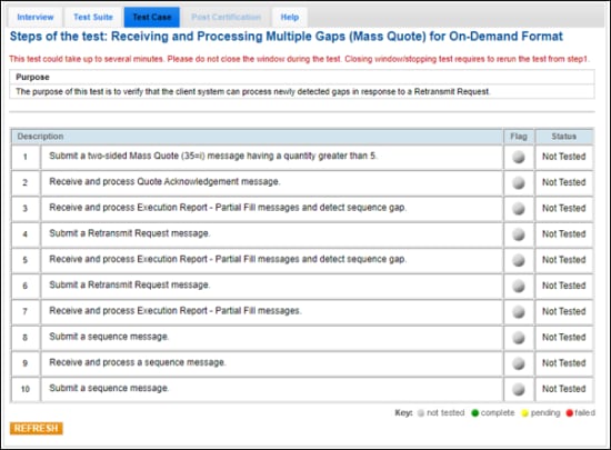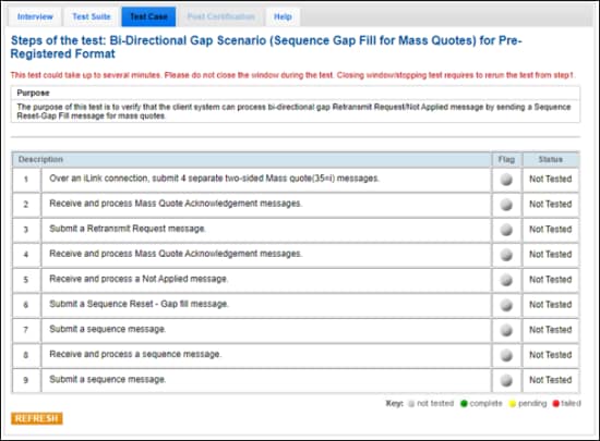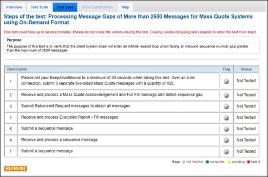 - To run the Processing Message Gaps of More than 2500 Messages for Mass Quote Systems test: