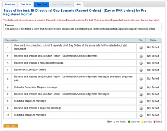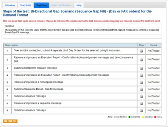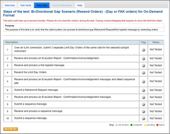 The following tests are available to verify that the client system can process and request message retransmission (as applicable) when a gap is detected. The sections below describe the purpose of individual tests.