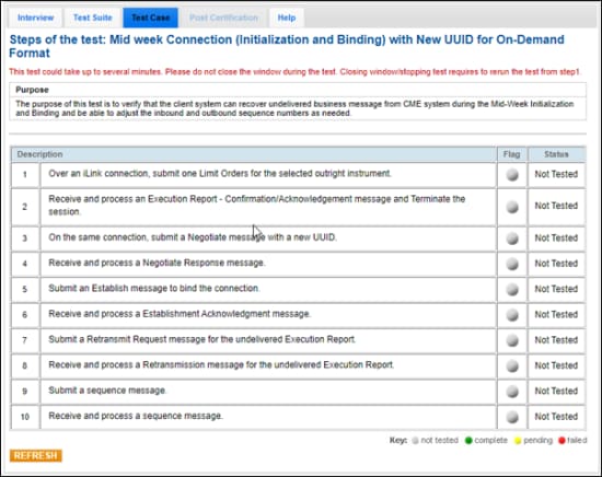 The purpose of this test is to verify that the client system can properly logon or Negotiate to the CME system using the security enhancement functionality with key rotation. You will need two valid keys to complete this test.