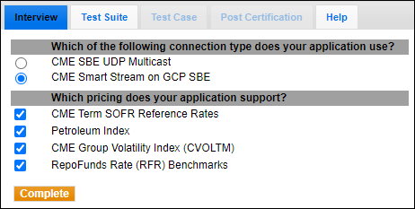 Based on your response, certain tests are required and others are optional. Before running the test cases, the pre-certification interview must be completed.