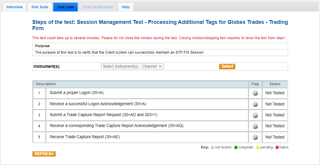 The example test procedure below is for a Processing Additional Tags for Globex Trades - Trading Firm test and may not appear in your test suite. The tests included in the test suite will depend on the venue(s) and firm type(s) that you indicated in the Interview.
