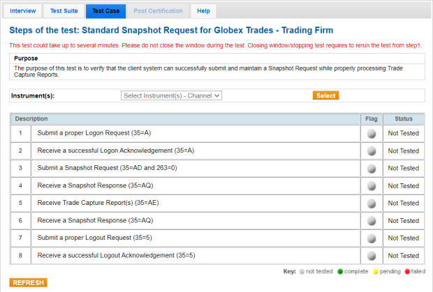 Note: The example test procedure below is for a Standard Snapshot Request and may not appear in your test suite. The tests included in the test suite will depend on the answers you provided in the Interview.