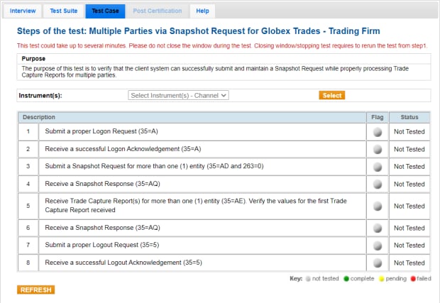 Note: The example test procedure below is for a Multiple Parties via Snapshot Request and may not appear in your test suite. The tests included in the test suite will depend on the answers you provided in the Interview.