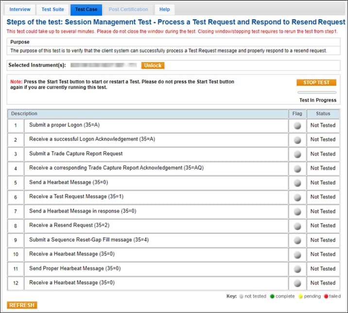 The purpose of this test is to verify that the client system can successfully process a Test Request message and properly respond to a resend request.