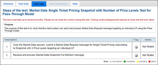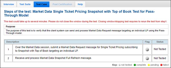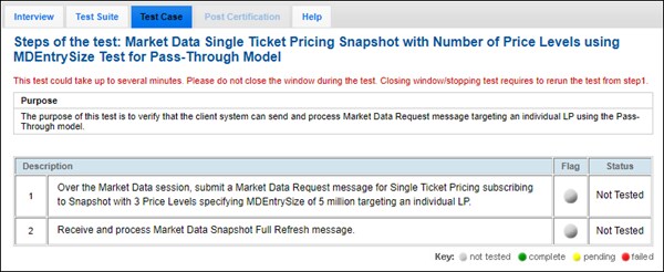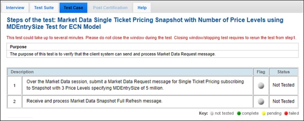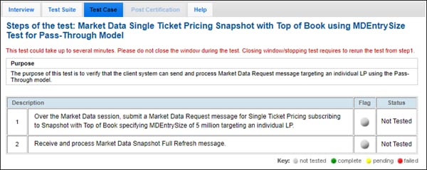 The purpose of this test is to verify that the client system can send and process Market Data Request message.