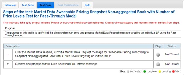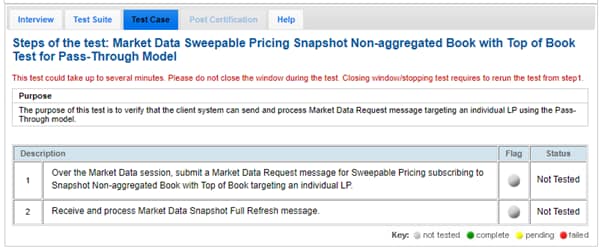 The purpose of this test is to verify that the client system can send and process Market Data Request messages.