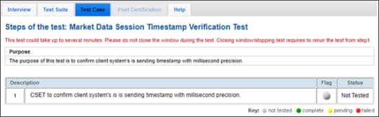 Note: This test is used for both Market Data or Order Session Test formats. The above image shows the Market Data format version of the test.