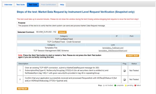- To run a Market Data Request by Instrument Level Request Verification (Snapshot only) test: