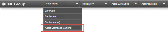 - From the CME Group Post Trade drop-down menu, select Asset Mgmt and Banking.