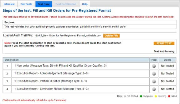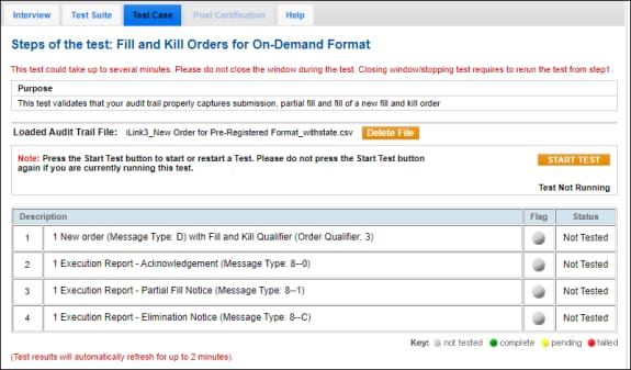 - From the Test Suite screen, select Fill and Kill Orders for Pre-Registered / On-Demand Format.