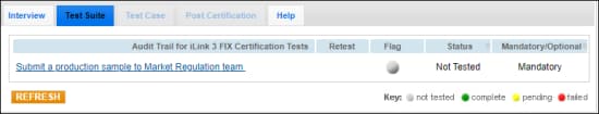 The following test appears if Audit Trail for iLink FIX is selected for the Purpose and Test Suite.