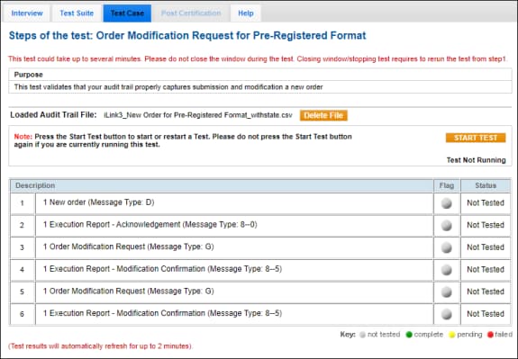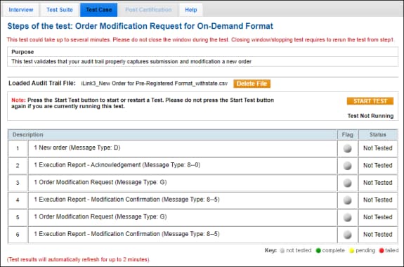 - From the Test Suite screen, select Order Modification Request for Pre-Registered / On-Demand Format.