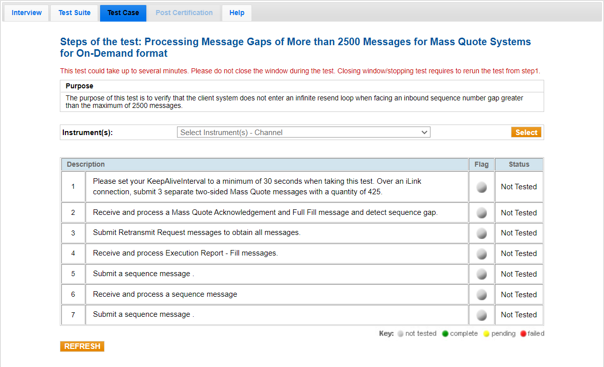 - To run a Processing Message Gaps of More than 2500 Messages for Mass Quote Systems with Pre-Registered Format test: