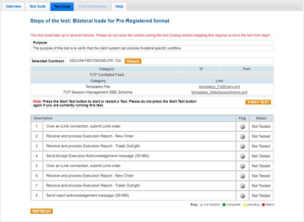 Note: If a test is not proceeding to the next step, selecting the Refresh button (