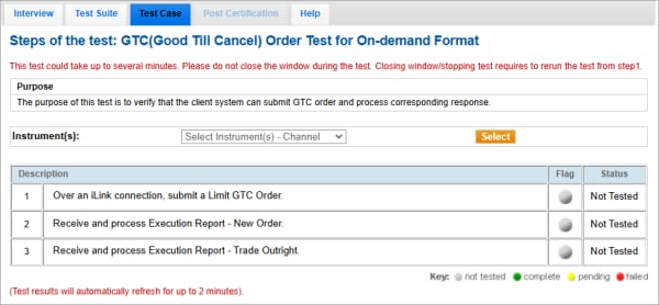 The purpose of this test is to verify that the client system can submit GTC order and process corresponding response.