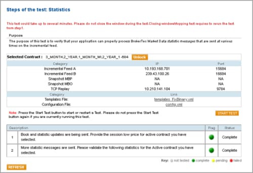 This test verifies that your application system can properly process BrokerTec Market Data Incremental Refresh (tag 35-MsgType=X) statistic messages that are sent at various times on the Incremental feed.