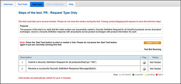 The purpose of this test is to verify that the client system can successfully submit a Security Definition Request for all ClearPort products across all product exchanges, and receive a Security Definition response with all products across exchanges with product information for each.