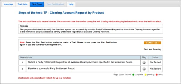 The purpose of this test is to verify that the client system can successfully submit a Party Detail List Request and receive a Party Detail List Report for all available Clearing Accounts.