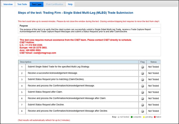 This test is required for trading firms using HTTPS connections to submit either single-sided only or both single-sided and dual-sided multi-leg trades.