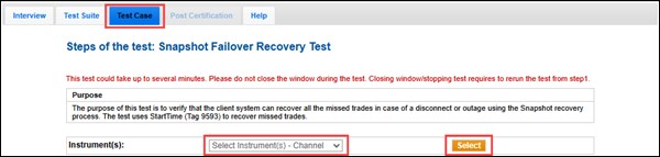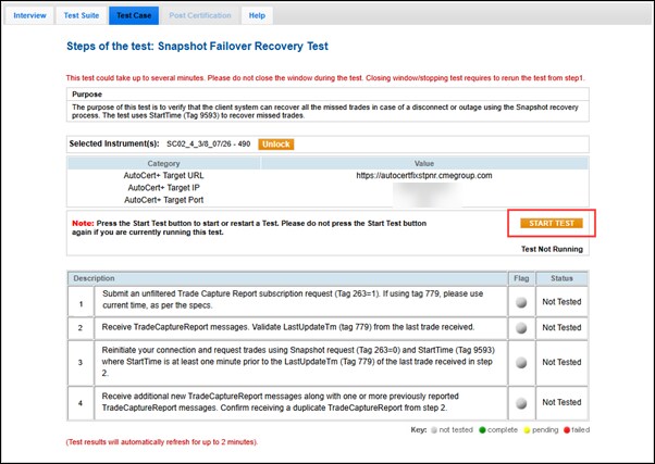 The purpose of this test is to verify that you can recover all missed trades in case of a disconnect or outage using the Snapshot recovery process. The test uses StartTime (Tag 9593) to recover missed trades.
