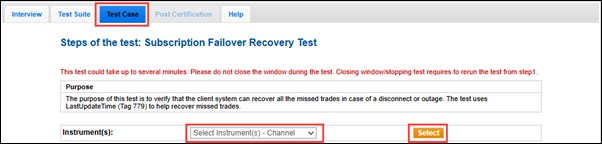 The purpose of this test is to verify that the client system can recover all missed trades in case of a disconnect or outage. The test uses LastUpdateTime (Tag 779) to help recover missed trades.