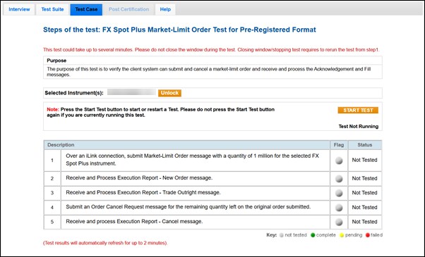 - Over an iLink connection, submit a Market-Limit Order message with a quantity of 1 million for the selected FX Spot Plus instrument.