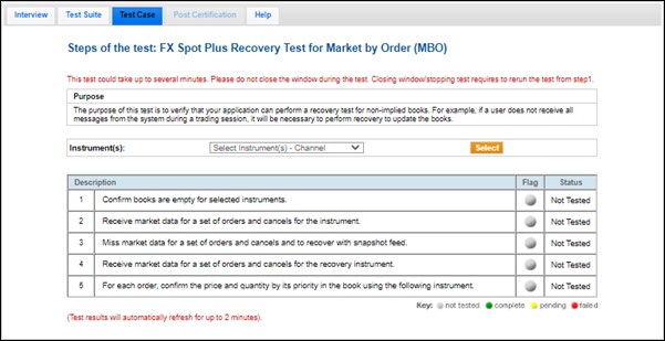 The purpose of this test is to verify that your application can perform a recovery test for non-implied books. For example, if a user does not receive all messages from the system during a trading session, it will be necessary to perform a recovery to update the books.
