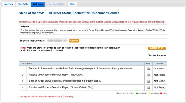 The Purpose of this test is to verify that a customer application can submit an Order Status Request (35=H) and receive an Execution Report - Status (35=8, 150=I) when obtaining status for the order.