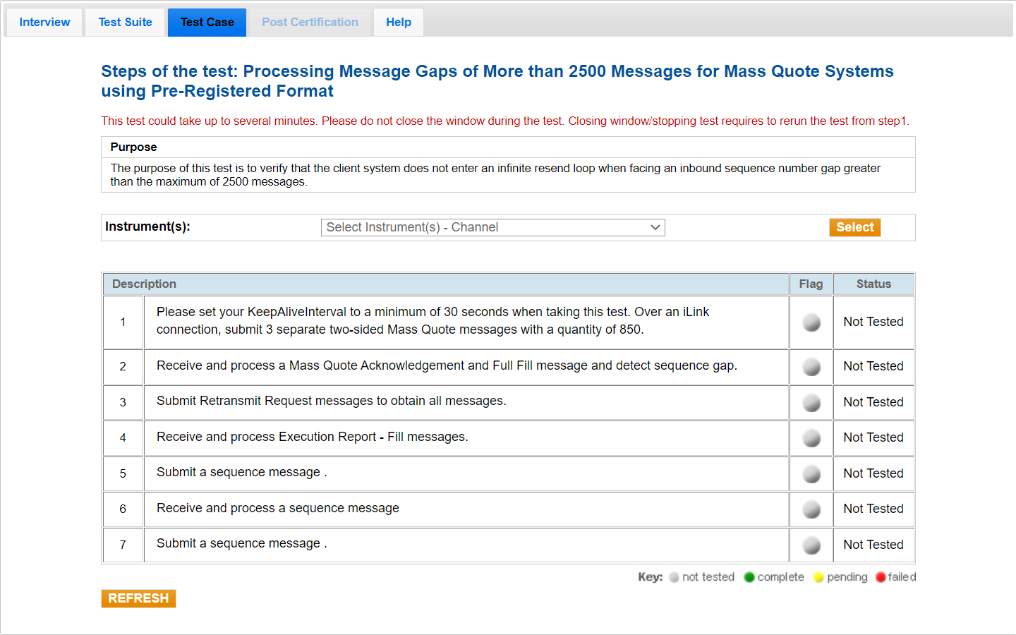 - To run a Processing Message Gaps of More than 2500 Messages for Mass Quote Systems using Pre-Registered Format test: