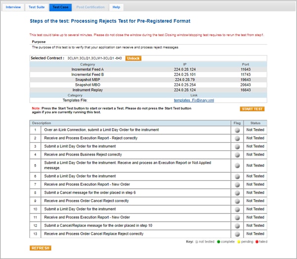 The purpose of this test is to verify that your application can receive and process reject messages.