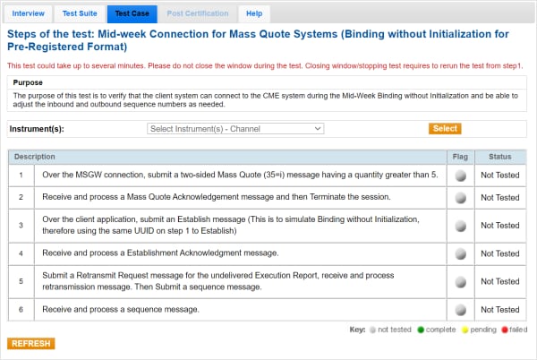 - To run a Mid-Week Connection for Mass Quote Systems (Binding without Initialization) test: