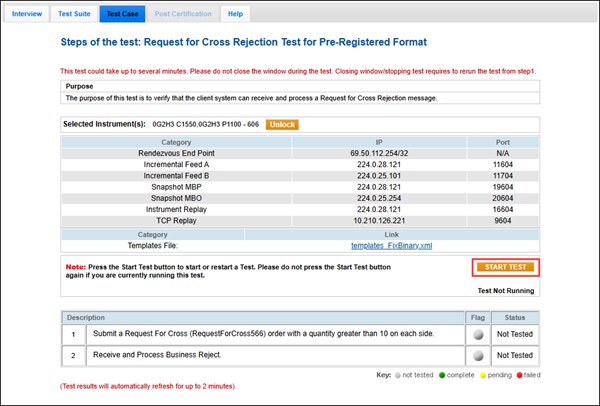 The purpose of this test is to verify that the client system can receive and process a Request for Cross Rejection message.