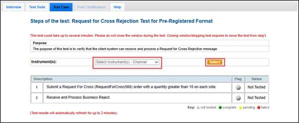 - On the Test Case tab, use the Instrument(s) drop down menu to choose an instrument and channel and click SELECT.
