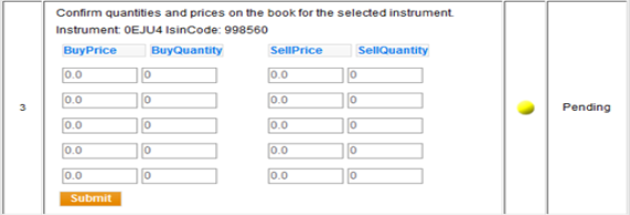 - Enter the quantities (tag 271-MDEntrySize) and prices (tag 270-MDEntryPx) from the book for the selected instrument.