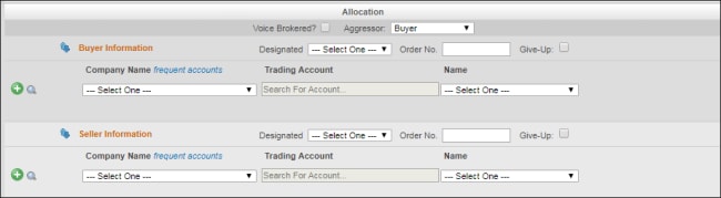 - Give-Up: Indicates if the trade is marked for Allocation. If selected, Carry / Claim Firm information is specified in the Allocation block.