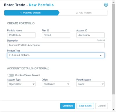 These instructions cover how to build a portfolio manually, add products and trades, and margin. For omnibus/parent portfolio, see Omnibus Portfolio.