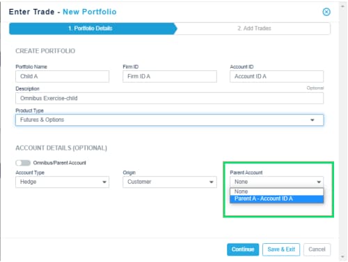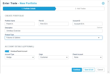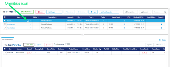 An omnibus portfolio structure is comprised of a parent portfolio and 0, 1 or many child accounts. First create the parent, then create linked children, add products/trades, then margin.