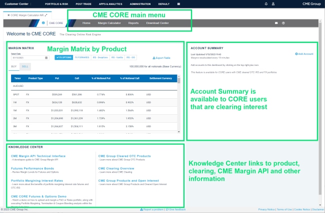 Upon login the CME CORE landing page appears with the Home tab selected. CME CORE has a responsive design and is accessible from wide screen, tablet, and mobile devices.