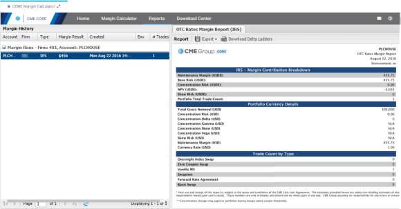 Using the Reports functionality, users can view summary trade and margin calculation information, for the following asset classes.